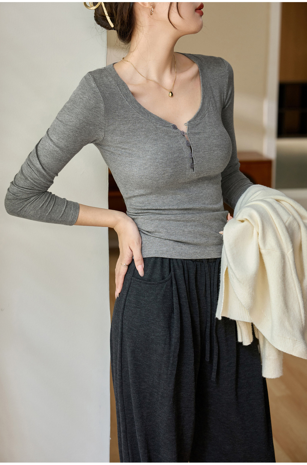#鞦鼕新款 #修身長袖T恤 #紐扣設計 #性感T恤 #修身剪裁 #時尚T恤 #鞦鼕穿搭 #高級感 #優雅風格 #辣妹穿搭 #時尚單品 #百搭T恤 #簡約設計 #自信穿搭 #魅力T恤 #時尚上衣 #流行設計 #經典穿搭 #性感風格 #鞦鼕必備 #長袖T恤 #精緻設計 #舒適穿搭