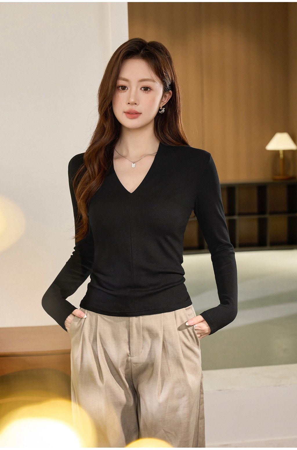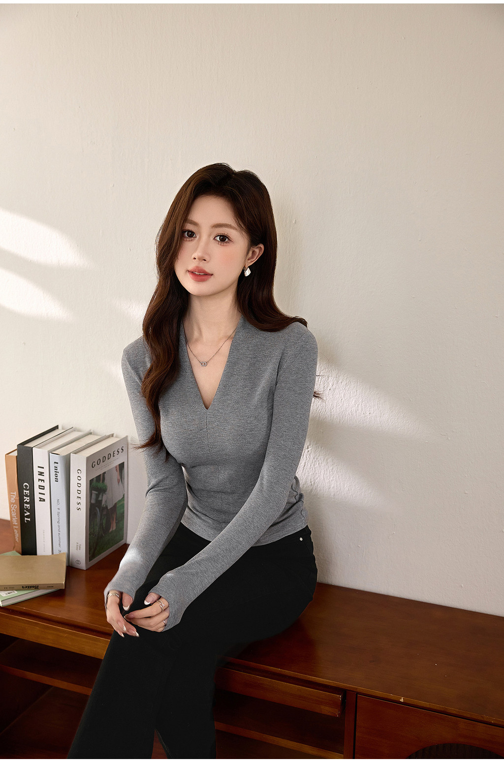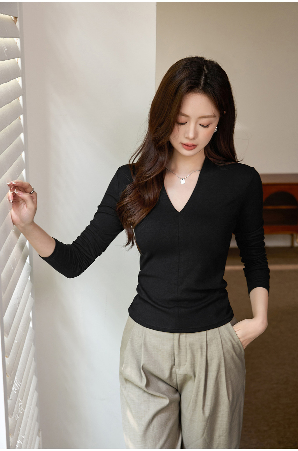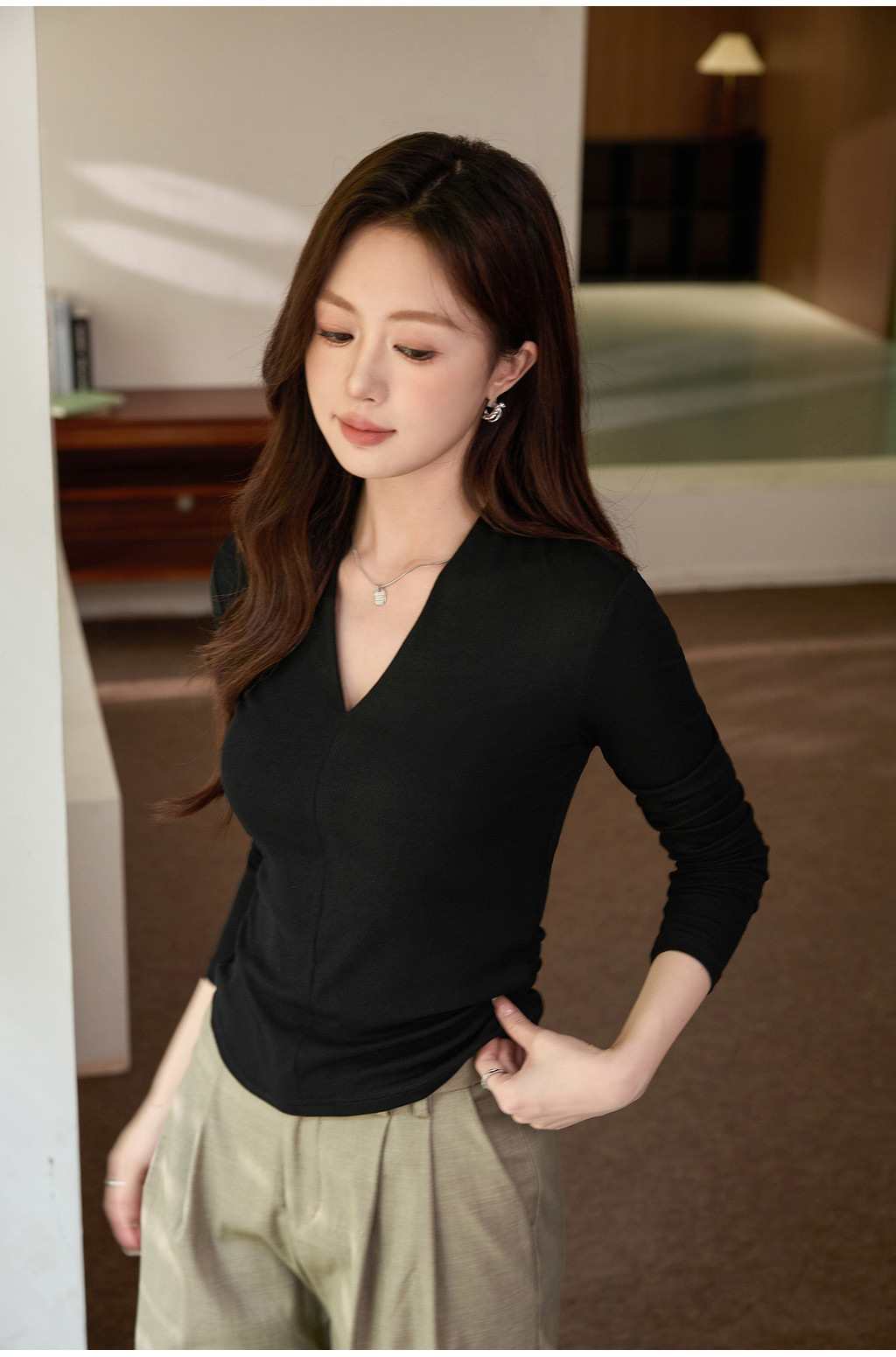 鞦鼕新款氣質深V領長袖T恤 | 修身顯瘦打底衫 | 時尚優雅必備上衣