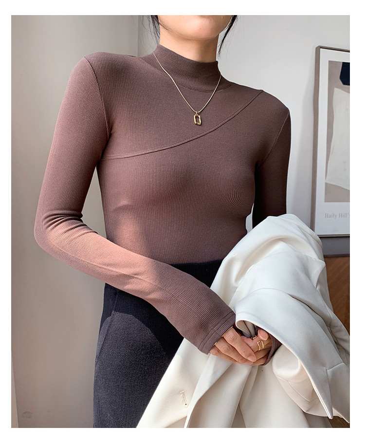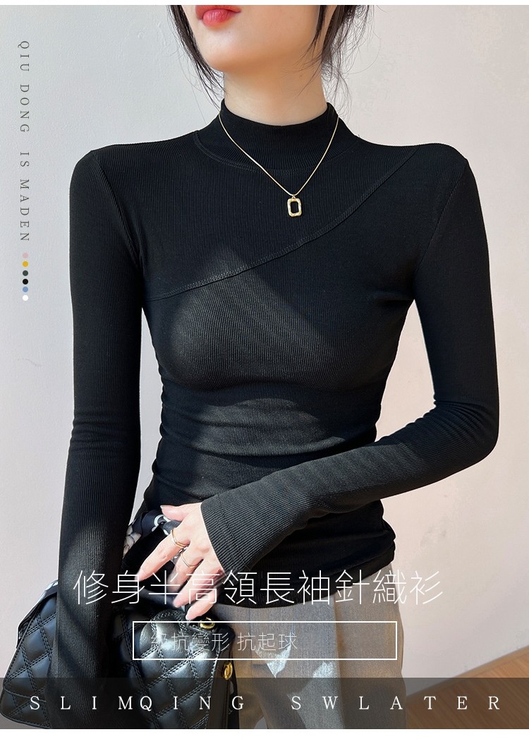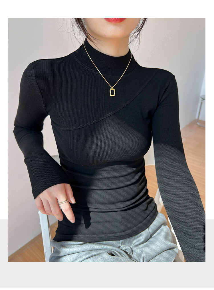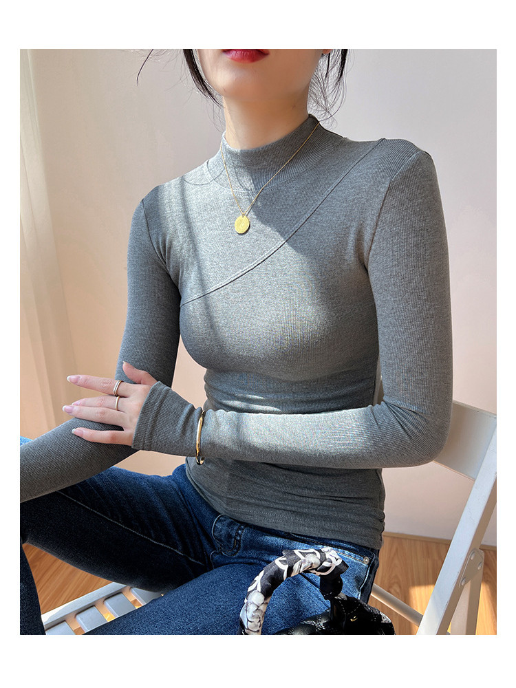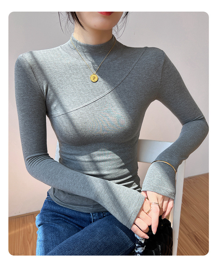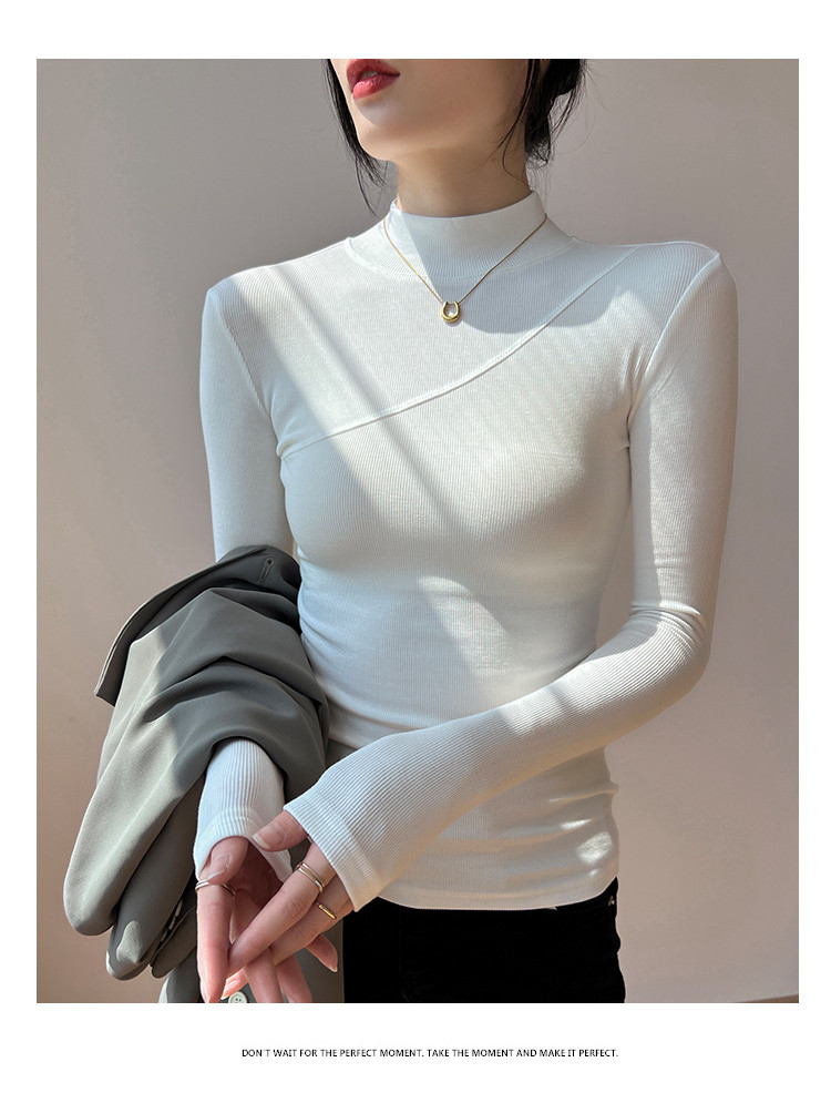 鞦鼕新款高彈棉內搭半高領長袖 | 打造優雅高級感 | 緊身加絨打底衫 | 親膚柔軟 | 保暖舒適 | 女T恤百搭上衣