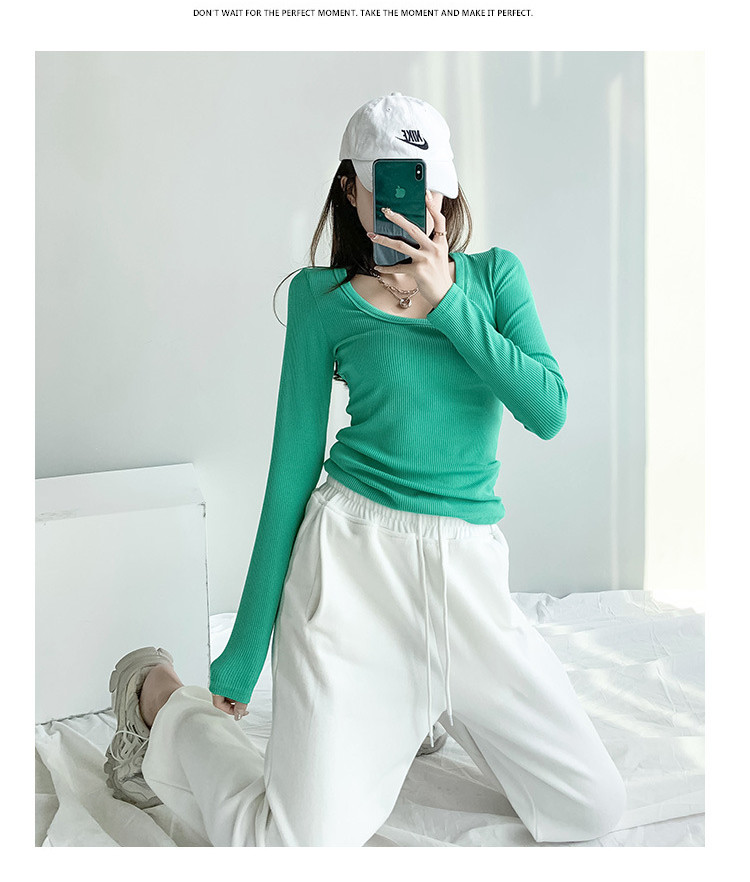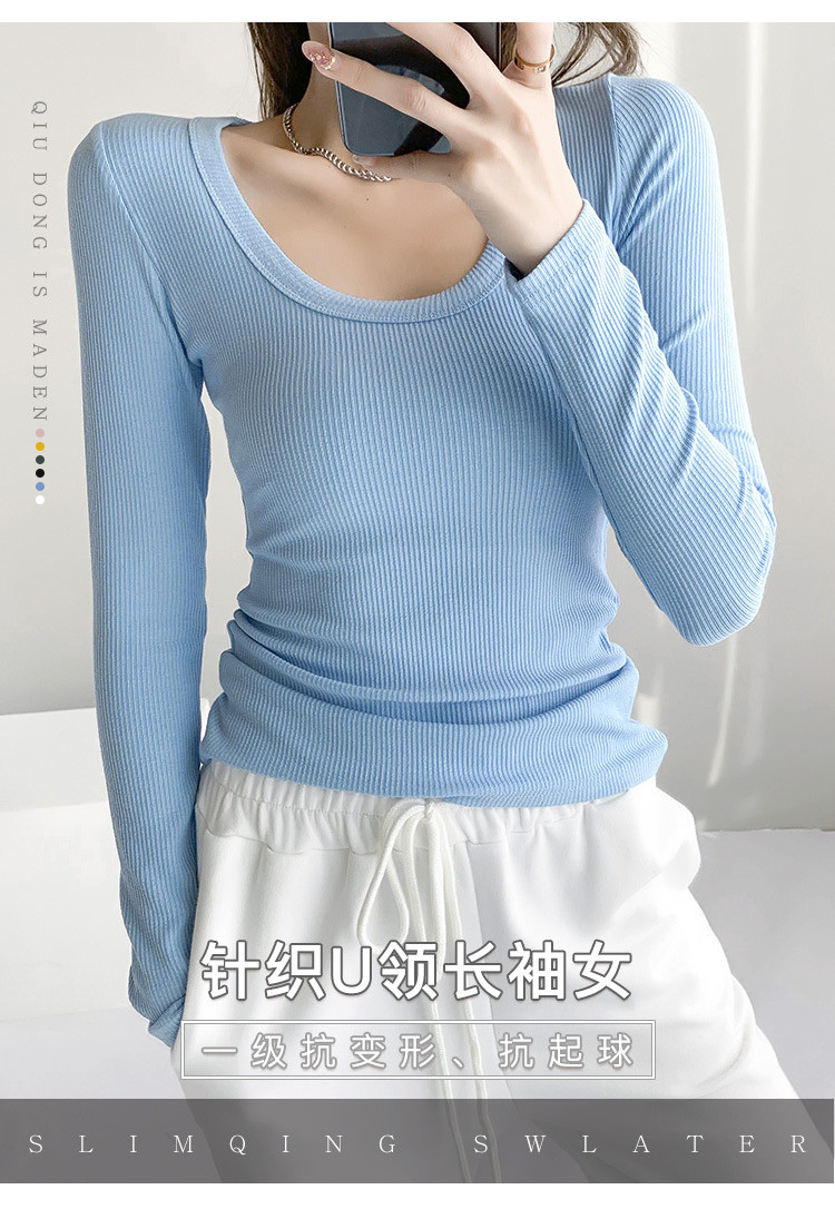 鞦鼕新款U領長袖修身打底衫 | 柔軟高級感 | 顯瘦百搭上衣 | 時尚優雅必備