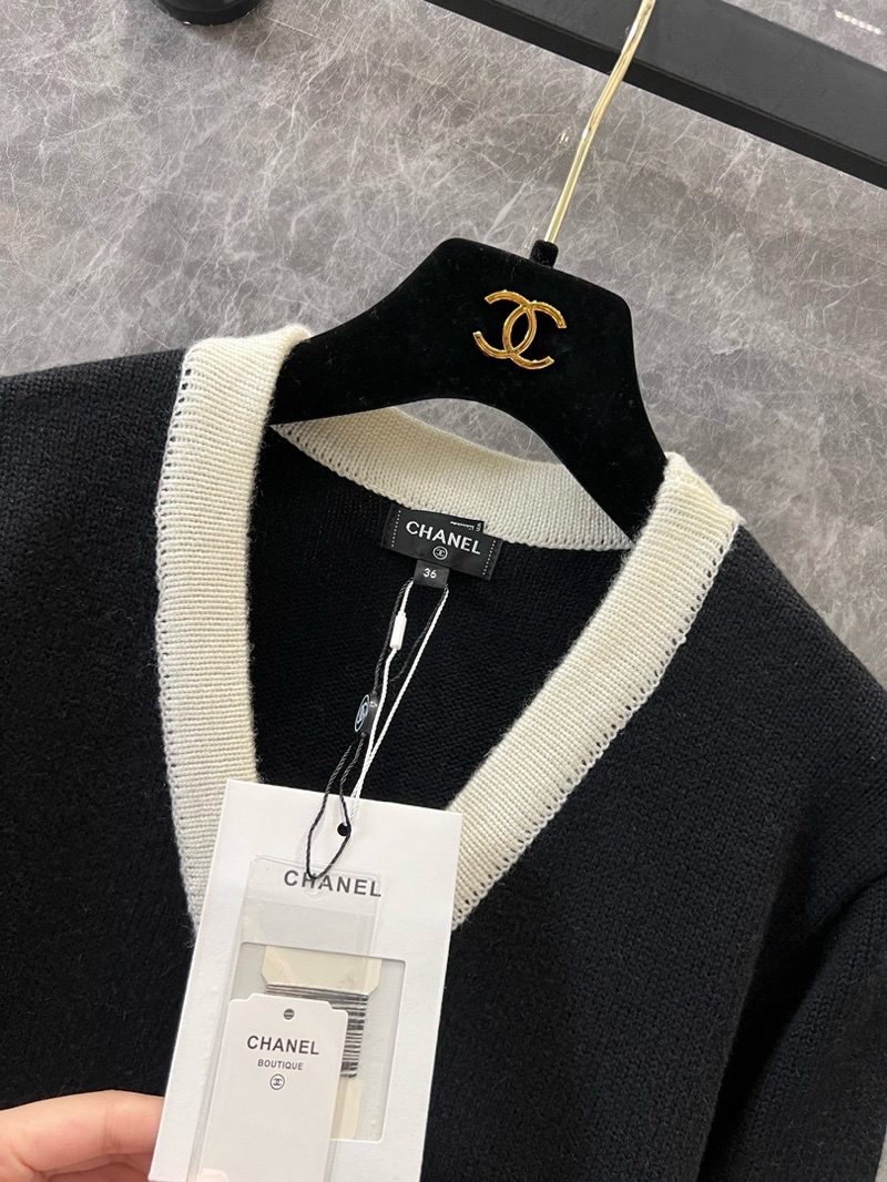 ⚠獨家開發!高版出品!撞色包邊V領設計 經典 很復古時髦 早秋推薦的毛衣系列 V領基礎版型上身顯瘦又百搭 進口機織面料柔軟又舒適😍完美做工品質看細節。