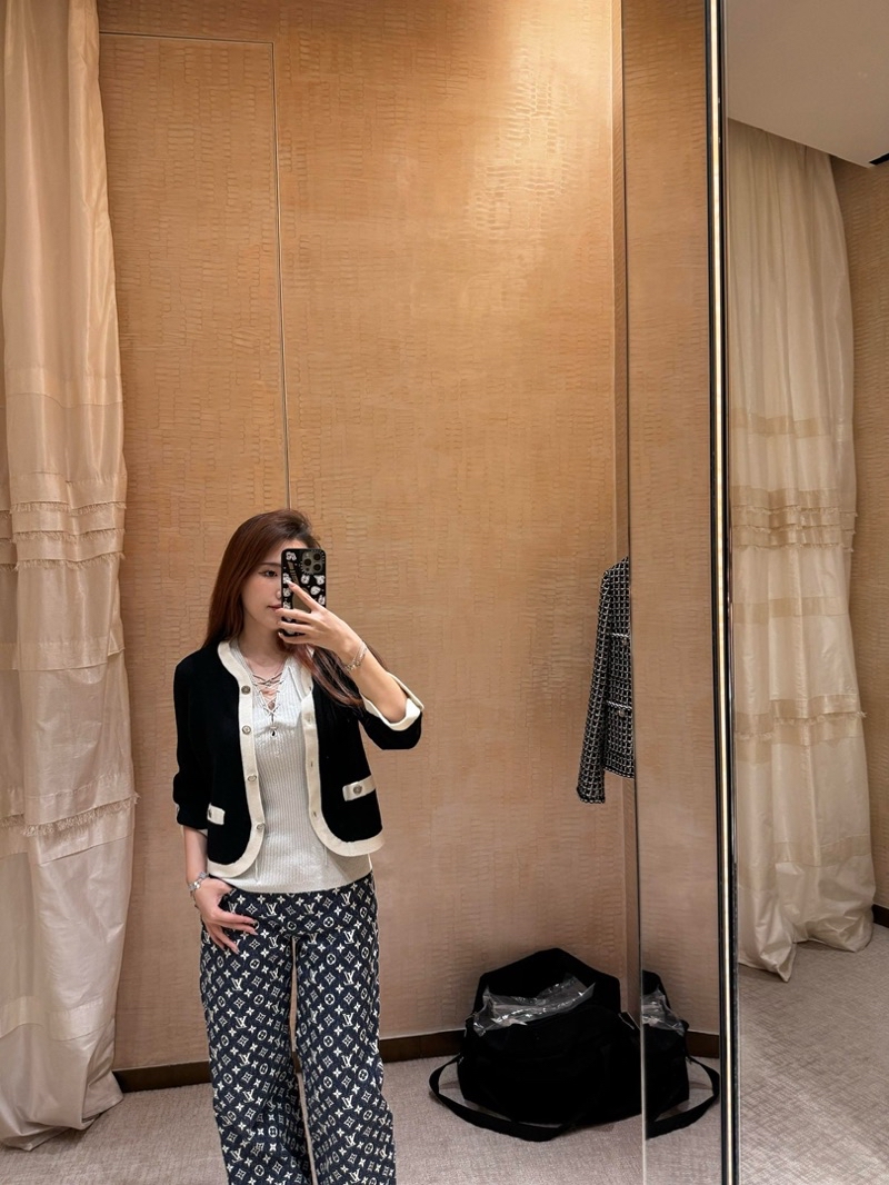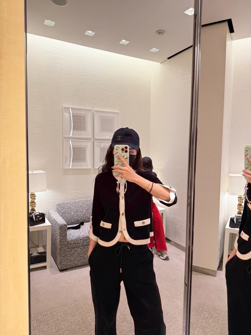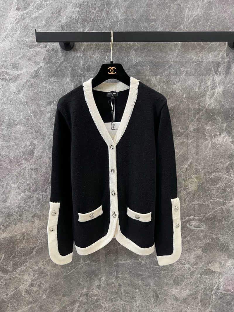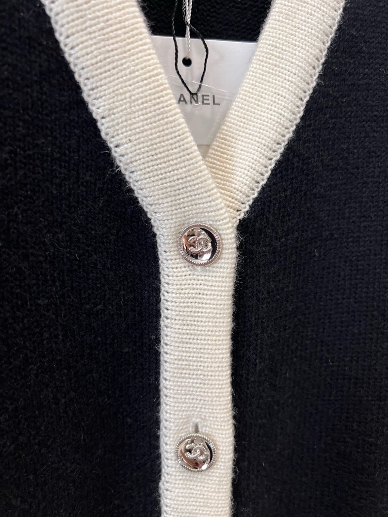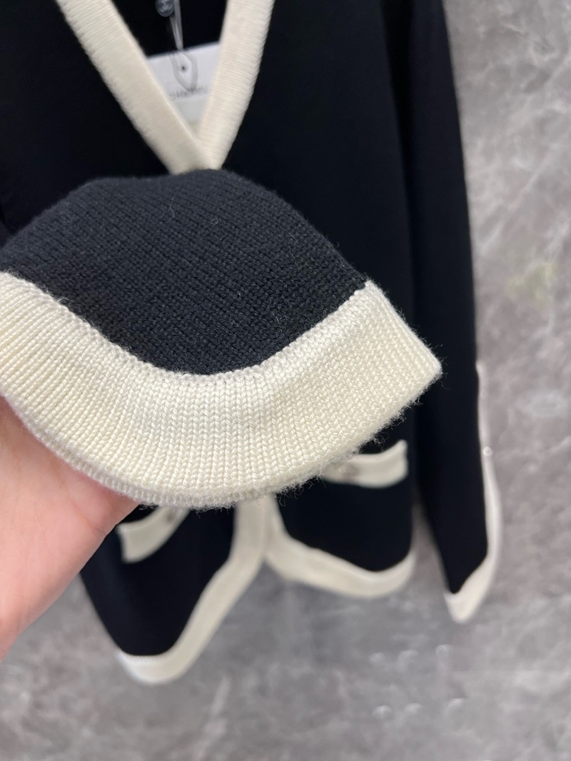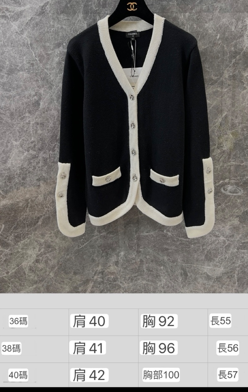 🍎Chane* 香奶奶* 新款 雙C扣黑白撞色七分袖針織開衫